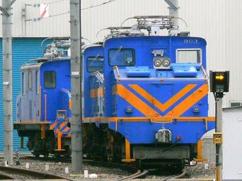 | Keywords: Meitetsu Type Deki 603.JPG Two Meitetsu Class DeKi 600 electric locomotives with DeKi 603 visible and a DeKi 300 electric locomotive at Shinkawa Depot 名鉄デキ600形電気機関車(デキ603) 新 車区構内にて 公道より撮影 Own 2009-11-24 まも Mamo Meitetsu Type Deki 300 Meitetsu Type Deki 600 Blue locomotives Shinkawa Inspection yard |