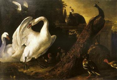 Keywords: Melchior Hondecoeter - Cisnes e Pavões.jpg Artwork Creator Melchior d'Hondecoeter century 17 technique oil canvas cm 145 211 5 Institution Museu Nacional de Belas Artes accession number 1919 T object history LangSwitch By exchange Laranjeiras Palace 1957 Permuta Palácio Laranjeiras 1957 credit line Scan MNBA/Banco Santos catalogue São Paulo 2002 PD-old-auto 1695 Paintings by Melchior d'Hondecoeter Swans and peacocks Baroque paintings of birds Dutch paintings in the Museu Nacional de Belas Artes Baroque paintings in Brazil Peacocks in paintings Swans in painting Cygnus olor pairs 17th-century oil on canvas paintings Oil paintings of birds 17th-century paintings in the Museu Nacional de Belas Artes 17th-century paintings not categorised by year 17th-century paintings of animals Swans in 17th-century art Paintings of animals in the Museu Nacional de Belas Artes |