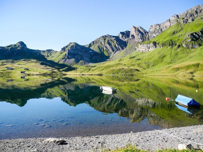 Keywords: melchseefrutt mountains mountain summit alpine lake bergsee berghaus mountain hut nature switzerland alpine