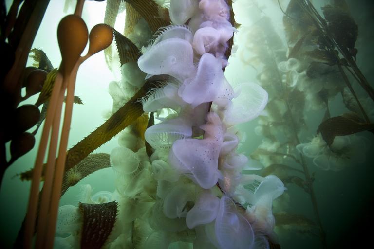 Keywords: Melibe leonina, Big Sur 2.jpg en An extraordinary density of the hooded nudibranch Melibe leonina The hoods of these predatory sea slugs exceeded 15 cm in diameter and were found on dozens of giant kelp between a depth of 15 and 30 feet offshore of Pfeiffer Big Sur State Park es Una extraordinaria densidad del nudibranquio encapuchado Melibe leonina Las capuchas de estas babosas marinas predadoras exceden los 15 cm de diámetro y se encontraban por docenas en kelp gigante a una profundidad entre 4 5 y 9 m en la costa del Parque Estatal Big Sur Pfeiffer EE UU 2011-08-01 14 27 03 http //www sanctuarysimon org/photos/photo_info php photoID 4583 search inverts s 260 page 14 Chad King / NOAA MBNMS other versions PD-USGov Melibe leonina