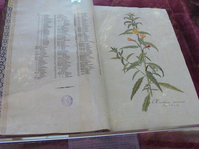 Keywords: Melk48.jpg Icones Plantarum Rariorum images of rare plants ; shown Oenothera nocturna Nachtkerze ; Nikolaus Joseph Freiherr von Jacquin a close friend of Mozart ; on display in the library of the Melk Abbey Austria own 2006-06-23 Georges Jansoone own photo Icones plantarum rariorum Unidentified Oenothera PD-old |