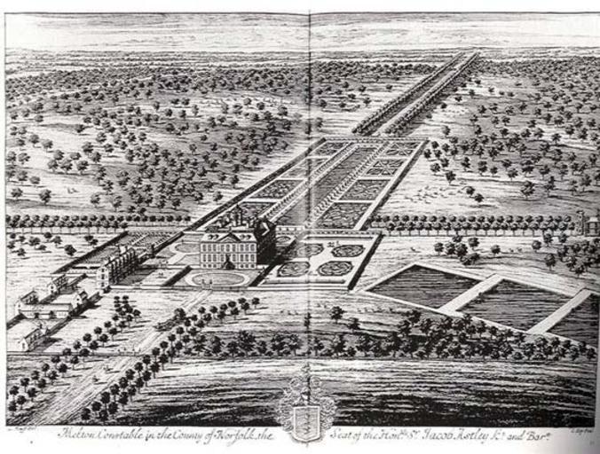 Keywords: Melton Constable Hall.jpg en Melton Constable Hall Park Designed by Capability Brown in 1764-69 http //www norfolkgt org uk/englishheritage2 html Engraving by Johannes Kip 1652/1653-1722 century 18 Melton Constable Hall PD-old