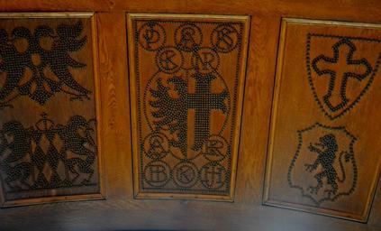 Keywords: Memmingen Rathaus Kriegswahrzeichen Nagelbilder 04.jpg Memmingen Rathaus Treppenhaus žKriegswahrzeichen von 1918 bestehend aus einem Glasfenster mit Soldatenmotiv und Nagelbildern mit Wappen own own photograph 2011-11 Photo Andreas Praefcke Kriegswahrzeichen Rathaus Memmingen Photos by User AndreasPraefcke Coats of arms of Memmingen |
