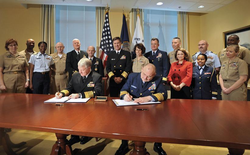 | Keywords: Memorandum of Agreement DVIDS1090815.jpg en WASHINGTON -- Chief of Naval Operations Adm Gary Roughead and Coast Guard Commandant Adm Thad W Allen sign a memorandum of agreement for the Safe Harbor program at the Pentagon Signing of the MOA reflects the Navy and Coast Guard's commitment to providing a lifetime of individually tailored coordinated non-medical care to seriously wounded ill or injured service members and their families 2009-04-01 April 1 2009 https //www dvidshub net/image/1090815 090401-N-+++++-003 2013-12-12 01 04 WASHINGTON DC US PD-USGov-Military-Navy Gary Roughead Images from DoD uploaded by Fæ |