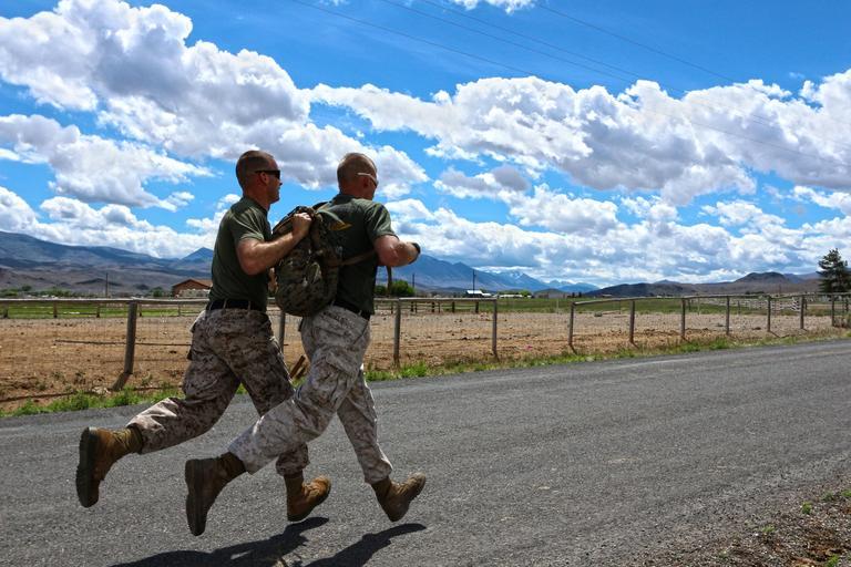 Keywords: men army training running jogging military teamwork marines patriotism honor service uniform marine camouflage team outdoor landscape