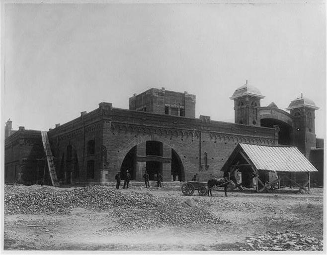 View Original: | Men,_horse-drawn_wagon_&_pile_of_crushed_rock_before_walled_city._ca._1890s.jpg (640x498) | |||