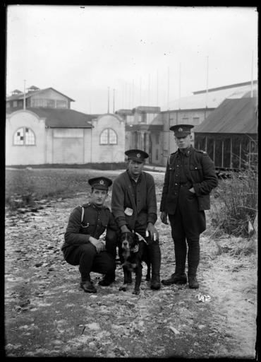 | Keywords: blackandwhite monochrome outdoor black and white Men in military uniforms with dog at the P.N.E. grounds VPL 17415 Date: 1918 Photographer/Studio: Thomson, Stuart Note: book in one man's pocket: The Nurse and the Knight, a (short) Story of the World War (I) Topic: Soldiers World War, 1914-1918, Dogs, Militia, Military uniforms Location: British Columbia - Vancouver British Columbia - Vancouver - Hastings-Sunrise - Exhibition Park More information on our historical photograph collection: www.vpl.ca/historicalphotos Men in military uniforms with dog at the P.N.E. grounds VPL 17415 Date: 1918 Photographer/Studio: Thomson, Stuart Note: book in one man's pocket: The Nurse and the Knight, a (short) Story of the World War (I) Topic: Soldiers World War, 1914-1918, Dogs, Militia, Military uniforms Location: British Columbia - Vancouver British Columbia - Vancouver - Hastings-Sunrise - Exhibition Park More information on our historical photograph collection: www.vpl.ca/historicalphotos |