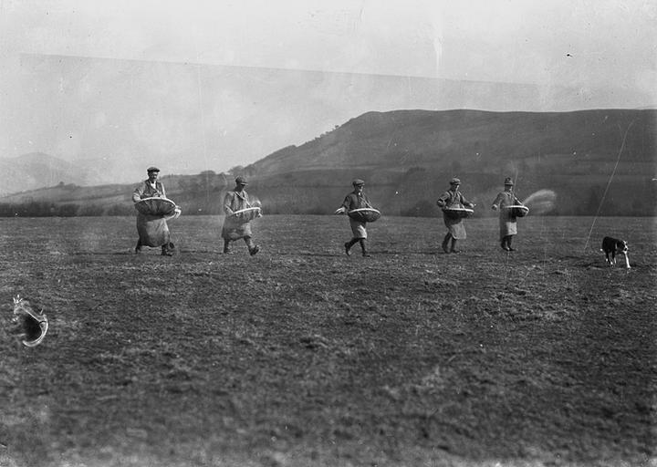| Keywords: Men sowing seed (3465701854).jpg Ffotograffydd/Photographer P B Abery 1877 -1948 Nodyn/Notes Image of men broadcasting seed Dyddiad/Date 194- Cyfrwng/Medium Negyddion gwydr / Glass negatives Maint/Dimensions 119 x 163 mm Cyfeiriad/Reference PBA19/21 Rhif cofnod / Record no http //cat llgc org uk/cgi-bin/gw/chameleon skin eresources lng en inst consortium conf /chameleon conf search KEYWORD function INITREQ elementcount 1 u1 12101 op1 0 t1 204461557 4461557 http //www llgc org uk/index php id 3639 L 1 Rhagor o wybodaeth am gasgliad P B Abery yn Llyfrgell Genedlaethol Cymru http //www llgc org uk/index php id 3639 More information about the P B Abery Collection at the National Library of Wales https //www flickr com/photos/llgc/3465701854/ Men sowing seed 2009-04-22 14 09 https //www flickr com/people/37199428 N06 Llyfrgell Genedlaethol Cymru / The National Library of Wales from Wales/Cymru LangSwitch Llyfrgell Genedlaethol Cymru The National Library of Wales User Llywelyn2000/NLW/Credit Template CC-zero <br/> <br/> LlGC ~ NLW https //flickr com/photos/37199428 N06/3465701854 2015-07-23 09 54 47 No known copyright restrictions Images uploaded as part of NLW - WMUK collaboration National Library of Wales Photographs by P B Abery in the National Library of Wales Agriculture in Wales |