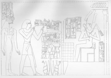| Keywords: Mencheperreseneb.jpg en Scene from the tomb of the High Priest of Amun Menkheperreseneb at Thebes Theban Tomb 86 TT86 18th dynasty time of Thutmose III The owner and his mother Ta-iunet are here seen on the left adoring a figure of Osiris Khentamentet enthroned on a high dais set under a simple baldachin N de Garis Davies The Tombs of Menkheperrasonb Amenmose and Another 1933 Pl XXV Davies 1933 Ancient Egyptian paintings in tombs Menkheperraseneb TT86 Tomb of Menkheperraseneb TT86 N de Garis Davies Scanned with Canon CanoScan LiDE 90 Unclear-PD-US-old-70 |
