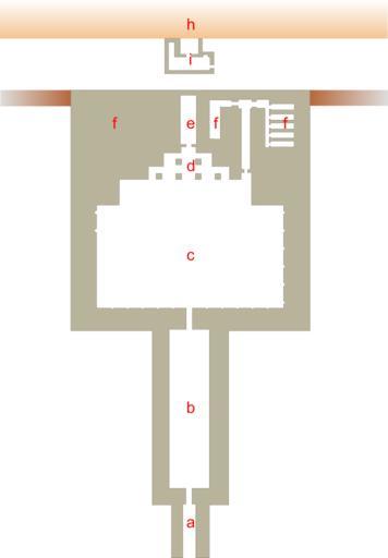 Keywords: Menkaure mortuary temple verner1.svg en Diagram of Menkaure' mortuary temple at the time of Menkaure's death according Miroslav Verner a - causeway; b - long forechamber; c - courtyard; d - pillared hall; e - sanctuary; f - storerooms; g - anctichambre carrée missing ; h - pyramid; i - offering chapel Diagram is not proportional hu Menkauré halotti templomának alaprajz vázlata Menkauré halálának idejében Miroslav Verner szerint a - feljáróút; b - hosszú előcsarnok; c - udvar; d - oszlopcsarnok; e - szentély; f - tárolóhelyiségek; g - egyoszlopos terem nincs ; h - piramis; i - áldozókápolna Az ábra nem méretarányos own HoremWeb 2009-06-21 Mortuary Temple of Menkaura Floor plans of ancient Egyptian temples |