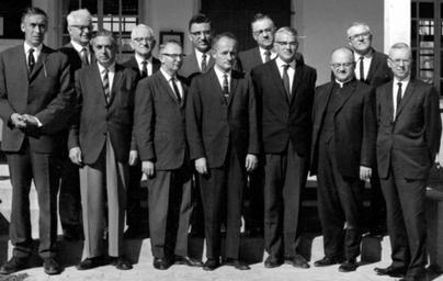 Keywords: mwc mennonite world conference mennoniteworldconference blackandwhite monochrome black and white Presidium Meeting in Filadelfia, Paraguay. From left to right: J.J.J. van Sluys, chmn ADS, Netherlands; Richard Hertzler, Weierhof, Germany (also a rep. of Switzerland and France); J.A. Oosterbaanm, Netherlands; J.R. Barkman, EMB, Henderson, Nebraska; Erland Waltner, GC, President of MWC; J.A. Toews, MB Winnipeg; C.J. Dyck, Executive Secretary MWC; Harold Schmidt, Treasurer NA; Peter Wiens, Vice President for SA; J.C. Wenger, Vice President for NA; Ben G. Reimer, EMC, Canada; Walter Gering, GC, Normal, Illinois. Citation: Mennonite World Conference Records, 1923-2012. X-009. Mennonite Church USA Archives - Goshen. Goshen, Indiana. Box 19, Folder 8. Presidium Meeting in Filadelfia, Paraguay. From left to right: J.J.J. van Sluys, chmn ADS, Netherlands; Richard Hertzler, Weierhof, Germany (also a rep. of Switzerland and France); J.A. Oosterbaanm, Netherlands; J.R. Barkman, EMB, Henderson, Nebraska; Erland Waltner, GC, President of MWC; J.A. Toews, MB Winnipeg; C.J. Dyck, Executive Secretary MWC; Harold Schmidt, Treasurer NA; Peter Wiens, Vice President for SA; J.C. Wenger, Vice President for NA; Ben G. Reimer, EMC, Canada; Walter Gering, GC, Normal, Illinois. Citation: Mennonite World Conference Records, 1923-2012. X-009. Mennonite Church USA Archives - Goshen. Goshen, Indiana. Box 19, Folder 8. |