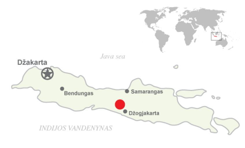 Keywords: Merapi location map (LT).png Location of the vulcanoe Merapi in Java Indonesia Lithuanian version 2007-02-15 own assumed Arz Maps of Mount Merapi Maps of Java