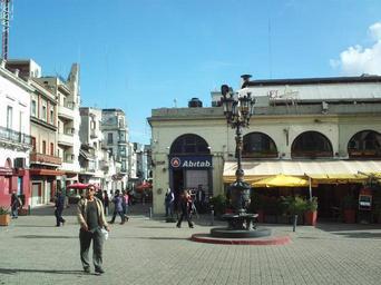 Keywords: Mercado del Puerto and lamp post fountain.JPG en Mercado del Puerto from the outside and the lamp post fountain at Calle Perez Castellano 2014-05-14 20 06 05 own Ypsilon from Finland cc-zero Uploaded with UploadWizard Mercado del Puerto May 2014 in Uruguay Abitab |