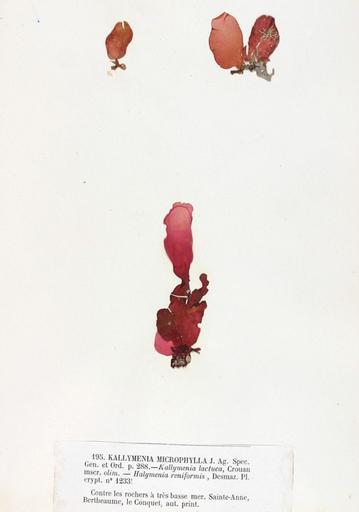 | Keywords: Meredithia microphylla Crouan.jpg « Kallymenia microphylla » Meredithia microphylla « Kallymenia microphylla » Meredithia microphylla http //serres u-bourgogne fr/article php3 id_article 790 Alguier des frères Crouan Université de Bourgogne Pierre-Louis Crouan 1798-1871 Hippolyte-Marie Crouan 1802-1871 1852 PD-old Meredithia microphylla Crouan brothers herbarium |