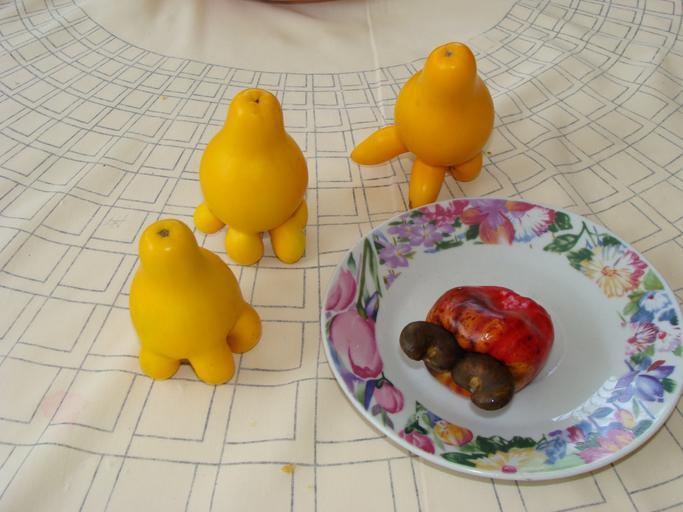 Keywords: Merey y uña de gato.JPG Fruto y semilla doble de merey y frutos de uña de gato Own 2008-05 Fev Cashew fruit Solanum mammosum