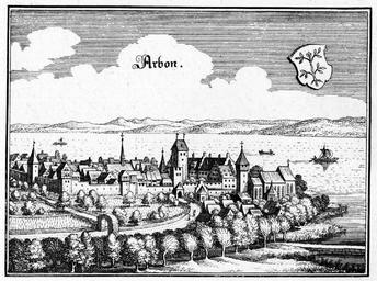 Keywords: Merian Arbon 1642.jpg en View of the town of Arbon Switzerland 1643 de Ansicht der Stadt Arbon Schweiz 1643 Topographia Sueviae Creator Matthäus Merian 1643 PD-old-100 Merian Sueviae picture Engravings by Matthäus Merian Arbon Lake Constance in art Historical images of the canton of Thurgau 1642 in Switzerland |