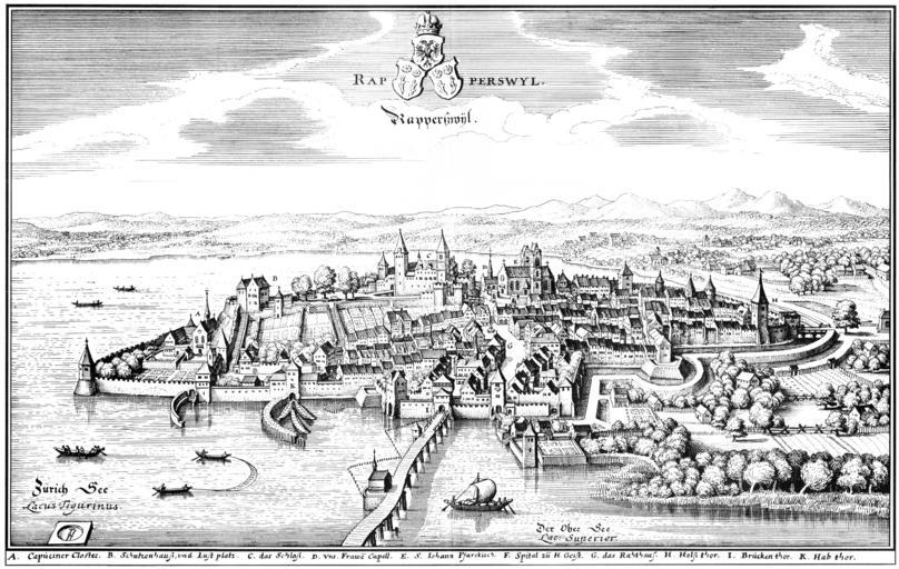 Keywords: Merian Rapperswil 1637.jpg Ansicht der Stadt Rapperswil Schweiz 1642 Die Umgebung besonders die östliche Schanze idealisiert The City of Rapperswil Switzerland copper engraving cm 20 32 credit line Topographia Helvetiae Rhaetiae et Valesiae Das ist/ Beschreibung unnd eygentliche Abbildung der vornehmsten Stätte und Plätze in der Hochlöblichen Eydgenossschafft / Graubündten / Wallis / und etlicher zugewandten Orthen In dieser andern Edition mit sonderm fleiß durchgangen/ und von virgen Fehlern corrigirt / vermehrt und gebessert Franckfurt am Mayn 1654 1642 Creator Matthäus Merian PD-old-100 Other versions Historical images of Rapperswil-Jona Merian Helvetiae 1642 in Switzerland Engravings of cities in Switzerland Town walls of Rapperswil Engravings by Matthäus Merian Taken with Nikon Coolpix P7700 |
