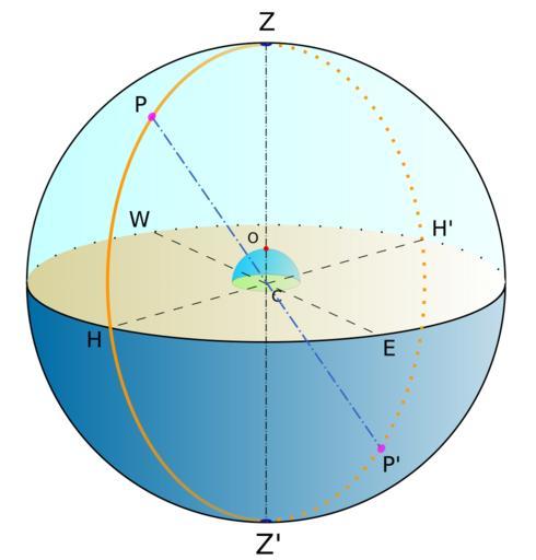 Keywords: Meridiano.svg Sfera celeste sono evidenziati i poli celesti e in arancione il meridiano P è il polo celeste elevato P' il polo celeste depresso Z lo Zenith Z' il Nadir C il centro della Terra e della sfera celeste O l'osservatore sulla superficie terrestre il cerchio PZP'Z' il meridiano Celestial sphere with poles and meridian C is the center of the celestial sphere O is the observer Own 2006-12-08 CAV Cc-zero Cc-pd Kopimi Astronomy sketches Celestial coordinate systems Celestial spheres |