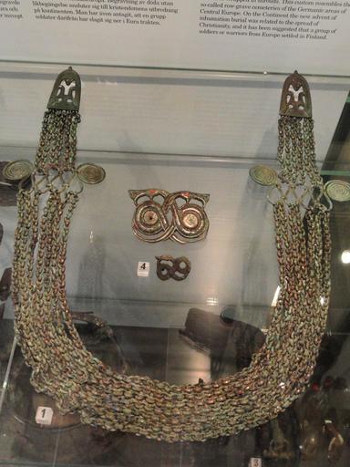 | View Original: | Merovingian ornaments - 1 Bronze chain necklace from Nastola - 4 Serpent brooches - National Museum of Finland - DSC04178.JPG (3240x4320) | |||