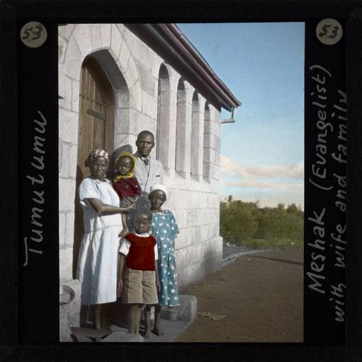 | Keywords: Meshak the Evangelist with wife and Family, Tumutumu, Kenya, ca.1905-ca.1940 (imp-cswc-GB-237-CSWC47-LS7-053).jpg en <br> Meshak the Evangelist with wife and Family Tumutumu Kenya ca 1905-ca 1940 Meshak Evangelist with wife and family Tumutumu Photograph of a husband and wife and their three children standing outside a church door at the mission station of Tumutumu ; This belongs to a series of Church of Scotland Foreign Missions Committee lantern slides relating to the Kikuyu Mission in Kenya which was set up by Church of Scotland missionaries Hospitals were established by Scottish missionaries in Kikuyu in 1908 in Tumutumu in 1909 and in Chogoria in 1922 The missionaries also introduced the Presbyterian Church to the area The Kikuyu are Kenya's most populous ethnic group Photographer Unknown Filename imp-cswc-GB-237-CSWC47-LS7-053 tif Coverage date 1905/1940 Part of collection International Mission Photography Archive ca 1860-ca 1960 Type images Part of subcollection Photographs from the Centre for the Study of World Christianity University of Edinburgh U K ca 1900-ca 1940s Repository name Centre for the Study of World Christianity Archival file impaunpub_Volume7/1659 url Repository address The University of Edinburgh School of Divinity New College Mound Place Edinburgh EH1 2LX United Kingdom Geographic subject country Kenya Format aacr2 1 lantern slide 8 x 8 cm Geographic subject continent Africa Rights Contact the repository for details Part of series Kenya Mission LS7 Repository email divinity-CSWC ed ac uk Subject lcsh Keyword Families of clergy; Church buildings Date created 1905/1940 Publisher of the digital version University of Southern California Libraries Subject aat genre group portraits Format aat lantern slides Legacy record ID impa-m68766 Access conditions http //www ed ac uk/schools-departments/divinity/research/centres/world-christianity/collections-resources File GB 237 CSWC47/LS7/53 1905/1940 author http //digitallibrary usc edu/cdm/ref/collection/p15799coll123/id/64732 PD-old-70-1923 Magic lantern images Images from USC Digital Library uploaded by Fæ International Mission Photography Archive ca 1860-ca 1960 |