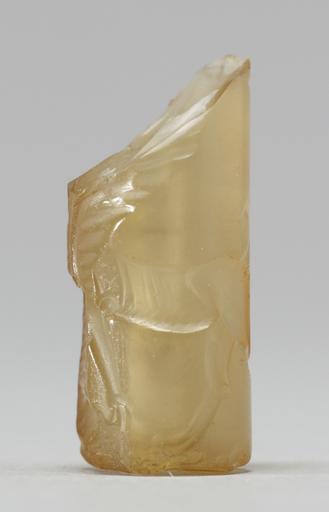 | Keywords: Mesopotamian - Cylinder Seal with Human Headed Winged Bull and Inscription - Walters 42808 - Side F.jpg This scene on this seal depicts a human headed winged lion wearing a horned crown with an inverted crescent in the field above him The scene also incorporates a cuneiform inscription in three registers late 2nd millenium BC Neo-Babylonain ; Assyrian yellow transparent stone cm 2 4 0 9 accession number 42 808 4549 Sadie Jones Mrs Henry Walters New York date and mode of acquisition unknown Sale Joseph Brummer New York 1941 Walters Art Museum 1941 by purchase Museum purchase 1941 Inscription place of origin Mesopotamia Walters Art Museum license Cylinder seals in the Walters Art Museum Art of Mesopotamia in the Walters Art Museum Lions in art of the ancient Near East Animals in art of the ancient Near East Pa cuneiform An cuneiform Griffin cylinder seal Walters 42808 Walters Art Museum cylinder seals with cuneiform Media contributed by the Walters Art Museum needs category review |