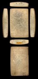 | Keywords: Mesopotamian - Stone Foundation Tablet - Walters 41222 - View A.jpg This tablet is plano-convex with a cuneiform inscription of Sin-iddinam on two faces between 1849 1843 BC Old Babylonian limestone cm 14 8 9 5 accession number 41 222 23210 Sadie Jones Mrs Henry Walters New York date and mode of acquisition unknown Sale Joseph Brummer New York 1941 Walters Art Museum 1941 by purchase Museum purchase 1941 Translation on obverse For Utu / lord of justice of heaven and earth / learned in decision / the one who choses in favor of innocence / the king of Ebabbar / his king / Sin-iddinam / the shepherd who decorates everything / for Nippur / the provider of Ur / king of Larsa / king of Sumer and Akkad / the Ebabbar / his beloved house ; Translation On reverse for the sake of his life / he built it / For abundant distant days / he enlarged that dwelling place / With the thing that he Sin-iddinam has done / may Utu / rejoice / A life of sweet things / and bright days / as a reward / may he Utu give to him Sin-iddinam place of origin Mesopotamia Walters Art Museum license Ancient Near East art in the Walters Art Museum Art of Mesopotamia in the Walters Art Museum Cuneiform Cuneiform on foundation objects Ab cuneiform Media contributed by the Walters Art Museum needs category review Nippur Sin-Iddinam |