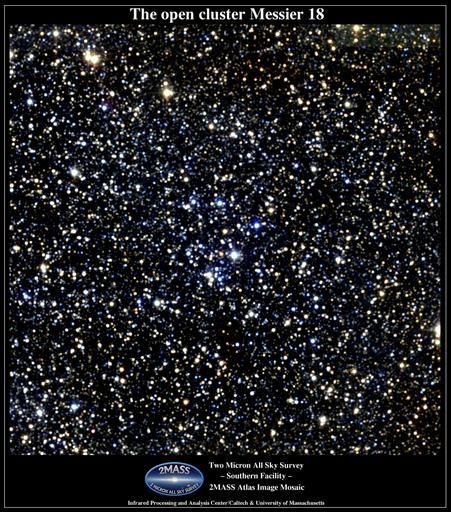 | Keywords: Messier 018 2MASS.jpg The open cluster Messier 18 http //www ipac caltech edu/2mass/gallery/messiercat html 2MASS Atlas Image Gallery The Messier Catalog Two Micron All Sky Survey 2MASS a joint project of the University of Massachusetts and the Infrared Processing and Analysis Center/California Institute of Technology funded by the National Aeronautics and Space Administration and the National Science Foundation 2MASS Atlas image Messier 18 2MASS Atlas Image Gallery The Messier Catalog BIG SIZE |