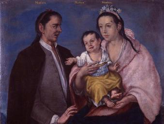 Keywords: Mestizo. Mestiza. Mestiza.jpg Artwork Creator 2half century 18 Oil on canvas size cm 100 125 Institution Museo Nacional de Antropología España accession number CE5245 object history credit line http //ceres mcu es/pages/Viewer accion 41 Museo AMuseo MNA Ninv CE5245 txt_id_imagen 1 txt_rotar 0 txt_contraste 0 txt_zoom 10 cabecera N viewName visorZoom thumb left PD-old-100 18th-century unidentified painters Collections from the Americas in the Museo Nacional de Antropología España Casta paintings 1780s paintings 18th-century family portraits 18th-century oil paintings of men at half length 18th-century oil paintings of women at half length 18th-century paintings in Madrid Cross-cultural couples Group portraits with 3 persons Indigenous peoples of the Americas in art Mestizo |