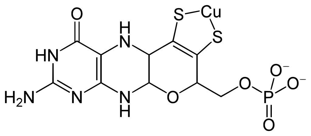 Keywords: Metal-binding pterin.svg MPT-AMP in the biosynthesis of the molybdenum cofactor MoCo own ; PMID 19675644 Yikrazuul 2010-08-29 Molybdenum cofactors Organocopper compounds