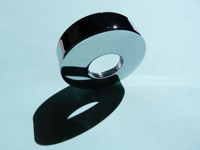 Keywords: metal piece cache macro chrome shine reflections aluminium light and shade detail sanitary