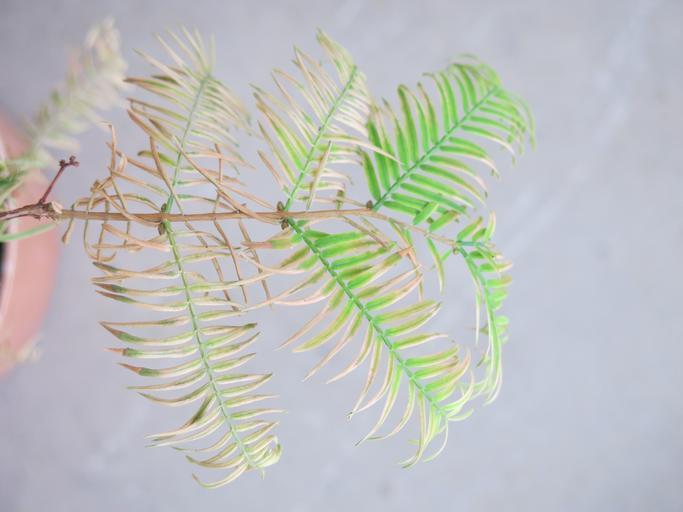 Keywords: Metasequoia bonsai D151119 (leaves).jpg en Green and brown leaves of Metasequoia bonsai in autumn fr Feuilles vertes et marron de bonsai de Metasequoia en automne sf 2015-11-19 Tangopaso thumb left Overview Bonsais grown by Tangopaso Metasequoia glyptostroboides foliage |