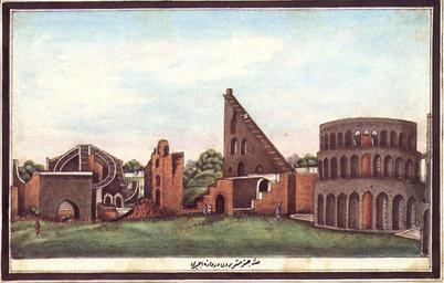 | Keywords: Metcalfe.jpg en The Jantar Mantar in Delhi a painting done in the 1840's; Source The Golden Calm An English Lady's Life in Moghul Delhi Reminiscences by Emily Lady Clive Bayley and by her father Sir Thomas Metcalfe ed M M Kaye New York Viking Press 1980 p 36 CU scan Dec 2000 s 1840 http //www columbia edu/itc/mealac/pritchett/00routesdata/1700_1799/jaipur/delhijantarearly/delhijantarearly html author PD-old-100 Uploaded with UploadWizard Jantar Mantar Delhi 1840s landscape paintings | ||||