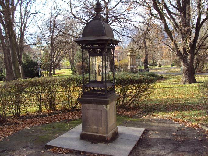 Keywords: Meteostanice.jpg cs Meteorologická stanice vzadu Kolostůjova kašna v parku vedle Krušnohorského divadla own Zákupák 2010-11-14 Lázeňský park Teplice Sculptures in Teplice Wettersäule