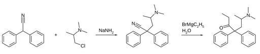 Keywords: Methadone synthesis 01.svg en Synthesis of methadone de Synthese von Methadon own Steffen 962 2011-08-17 PD-chem Cc-zero Methadone