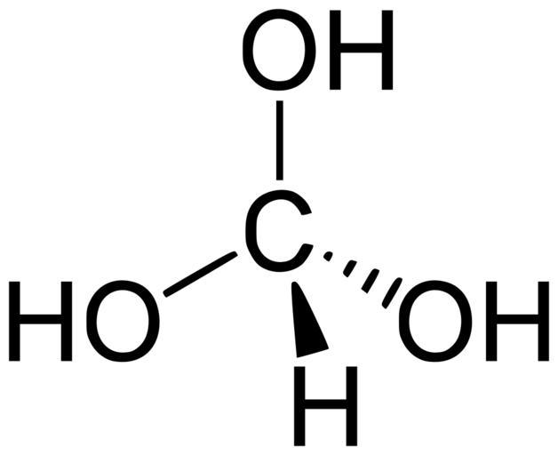 Keywords: Methanetriol.svg en orthoformic acid or methanetriol a hypothetical compound own Yikrazuul 2010-10-05 Hydrates Formic acid