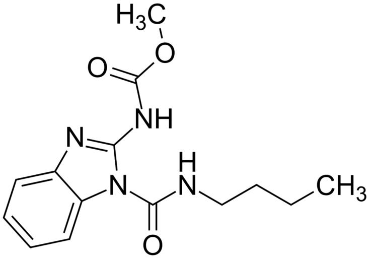 | Keywords: Methyl (1-(butylcarbamoyl)-1H-benzo(d)imidazol-2-yl)carbamate 200.svg validSVG Structure of methyl 1- butylcarbamoyl -1H-benzodimidazol-2-yl carbamate Own 2014-04-16 Emeldir <span class signature-talk >talk</span> Chemical structure verified https //upload wikimedia org/wikipedia/commons/0/00/Methyl_ 281- 28butylcarbamoyl 29-1H-benzo 28d 29imidazol-2-yl 29carbamate_200 svg 1S/C14H18N4O3/c1-3-4-9-15-13 19 18-11-8-6-5-7-10 11 16-12 18 17-14 20 21-2/h5-8H 3-4 9H2 1-2H3 H 15 19 H 16 17 20 RIOXQFHNBCKOKP-UHFFFAOYSA-N 17804-35-2 Synonyms <small> 1-Butylcarbamoyl-1H-benzoimidazol-2-yl -carbamic acid 1- Butylcabonyl -2-benzimidazole carbamic acid 1- Butylcarbamoyl -2-benzimidazolecarbamic acid methyl ester 1- Butylcarbamoyl -2-benzimidazolecarbamic acid methyl ester 2-Benzimidazolecarbamic acid 1- butylcarbamoyl - methyl ester 8CI Butylamino carbonyl-1H-benzimidazol-2-ylcarbamic acid methyl ester Agrocit Arbortrine arbortrine arilate Arilate BBC Benex Benlate Benlate 50 benlate 50 Benlate 50 W Benlate 50 w benlate 50 w Benlate R Benomilo Benomyl Benomyl 50 w benomyl 50 w Benosan Benzimidazolecarbamic acid 1- butylcarbamoyl - methyl ester BNM Carbamic acid 1- butylcarbamoyl -1H-benzimidazol-2-yl- methyl ester Carbamic acid butylamino carbonyl-1H-benzimidazol-2-yl- methyl ester 9CI Carbamic acid methyl- 1- butylcarbamoyl -2-benzimidazolyl ester carbamic acid methyl- 1- butylcarbamoyl -2-benzimidazolyl ester D 1991 Du Pont 1991 F 1991 F1991 Fibenzol fibenzol Fundasol fundasol Fundazol Fungicide fungicide 1991 Fungicide 1991 Fungicide D-1991 methyl 1- butylamino carbonyl -1H-benzimidazol-2-ylcarbamate Methyl 1- butylamino carbonyl -1H-benzimidazol-2-ylcarbamate Methyl 1- butylamino carbonyl-1H-benzimidazol-2-ylcarbamate Methyl 1- butylcarbamoyl -1H-benzodimidazol-2-ylcarbamate Methyl 1- butylcarbamoyl -2-benzimidazolecarbamate Methyl 1- butylcarbamoyl -2-benzimidazolylcarbamate methyl 1- butylcarbamoyl -2-benzimidazolylcarbamate Methyl 1- butylcarbamoyl benzimidazol-2-ylcarbamate methyl 1- butylcarbamoyl benzimidazol-2-ylcarbamate Methyl 1- butylcarbamoyl benzimidazol-2-ylcarbamate Methyl N- 1-butylcarbamoyl-2-benzimidazole carbamate methyl N-1- butylcarbamoyl benzimidazol-2-ylcarbamate Methyl-1-butylcarbamoyl-2-benzimidazole carbamate NS 02 NS O2 Pilarben Tersan 1991 Uzgen</small> PD-chem Benzimidazoles Carbamates Butylamines Fungicides |