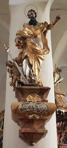 Keywords: Metnitz - Pfarrkirche - Paulus.JPG Denkmalgeschütztes Objekt Österreich 62520 Metnitz Pfarrkirche in Metnitz own Raul de Chissota 2011-07-12 PD St Leonhard in Metnitz - Skulpturen Sculptures of Saint Paul in Carinthia