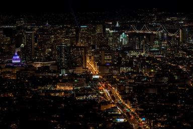 Keywords: metropolis night view aerial city dark lights illumination vibrant busy traffic cityscape buildings skyline skyscrapers modern panorama bridge street road america usa downtown urban