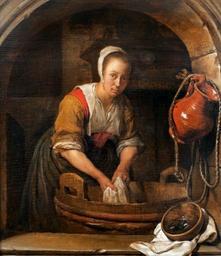 | Keywords: Metsu Washerwoman.JPG Artwork Creator Gabriël Metsu firsthalf otherdate century 17 oil panel cm 23 9 21 Institution National Museum Warsaw Palace on the Water accession number object history King roi król Stanisław Augustus Poniatowski Originally in the collection of the Palace on the Water in Warsaw between 1939 1945 theft the Germans from the warehoses of the National Museum in Warsaw provenanceEvent restitution 1994 United States National Museum in Warsaw credit line G Metsu signature Purchased in Palazzo Balbi together with An old man holding a pipe and a jug Włodzimierz Kalicki 2001 http //www hbquik com/poloniacal/sztuka/sztuka15 htm Trzystuletni romans Sztuka Zagrabiona 15 Polish American Congress of Southern California Catalogue of paintings removed from Poland by the German occupation authorities during the years 1939-1945 1 Foreign paintings / comp Władysław Tomkiewicz ; Ministry of Culture and Art Warsaw 1950 Editor Ministry of Culture and Art See also http //www mkidn gov pl/kolekcje/ Department of National Heritage Wartime losses an official webpage of Polish Ministry of Culture Art and National Heritage See below PD-old-100 DEFAULTSORT 1650<; Washerwoman Genre paintings by Gabriël Metsu Paintings by Gabriël Metsu in the National Museum in Warsaw Recovered works lost in Poland during World War II 17th-century oil on panel paintings in Poland 17th-century oil paintings of standing women at three-quarter length Baroque paintings of women Bowls vessel in art Dutch paintings of women standing in kitchens Jugs in art Washerwomen in art 17th-century women looking at viewer in art Paintings with brown background People in three-quarter views in art Arms in art |