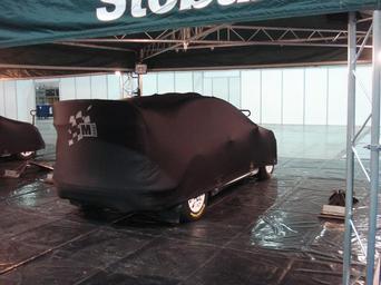 | Keywords: MEX 2008 RB 07 covered 2.jpg Gigi Galli's Ford Focus RS WRC 07 car sits under cover prior to the start of the 2008 Rally Mexico at rally base in the Poliforum in Leon Mexico Own 2008-02-27 Joshbaumgartner 2008 Rally Mexico Gigi Galli Ford Focus RS WRC 07 of M-Sport World Rally Team |