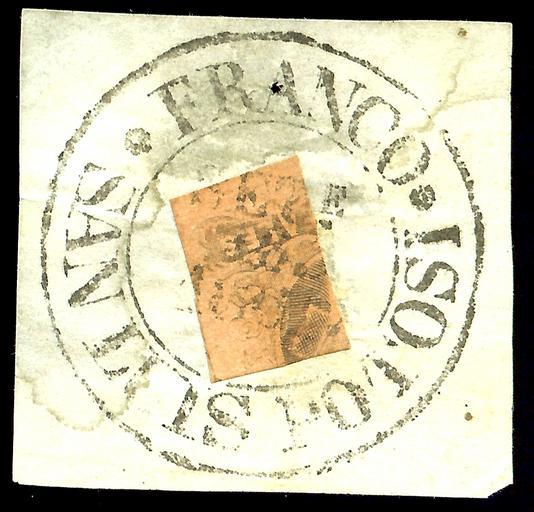 Keywords: Mexico 11 quartered.jpg <small></small> Summary en A Mexican 8 reales postage stamp Scott no 11 printed in 1861 quartered for used as 2 reales on piece of envelope with San Luis Potosi cancellation Scan of postage stamp on piece of envelope Mexican government postal system 1861 PD-old-70-1923 PD-Mexico 1861 stamps of Mexico 1861 stamps Bisects and splits |