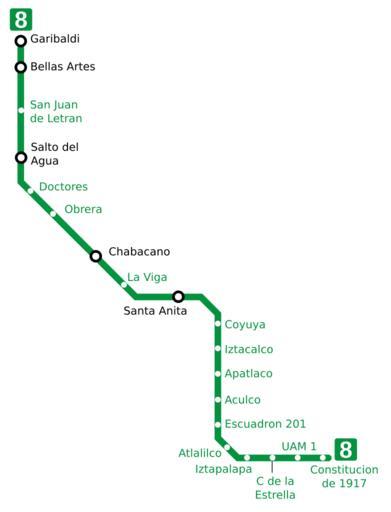 Keywords: Mexico City Metro line 8.svg inkscape Map of line 8 of the Mexico City Metro Vectorized by Mysid on a JPEG Image MetroDF Mapa 8 jpg originally by User Battroid 2008-02-25 Mysid Battroid Mexico City subway maps Line 8 of Mexico City Metro