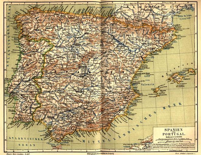 Keywords: Meyers b15 s0063a.jpg 15 0062 0064 63 Maps from Meyers Konversationslexikon 4th edition Old maps of Spain Old maps of Portugal