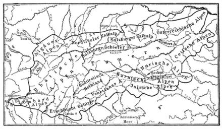 Keywords: Meyers b19 s0030 b1.png de Einteilung der Ostalpen nach A Böhm Meyers b19 s0030 jpg ca 1885 author PD-Meyers Images from Meyers Konversationslexikon 4th edition - text figures Old maps of the Alps