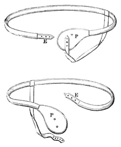 Keywords: Meyers b3 s0487 b1.png de Bruchbänder mit Einer Pelotte P Pelotte E Ergänzungsriemen Meyers b3 s0487 jpg ca 1885 author PD-Meyers Images from Meyers Konversationslexikon 4th edition - text figures Truss pads