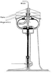 Keywords: Meyers b3 s0697 b1.png de Separator von de Laval Meyers b3 s0697 jpg ca 1885 author PD-Meyers Images from Meyers Konversationslexikon 4th edition - text figures Centrifugal separators Butter making