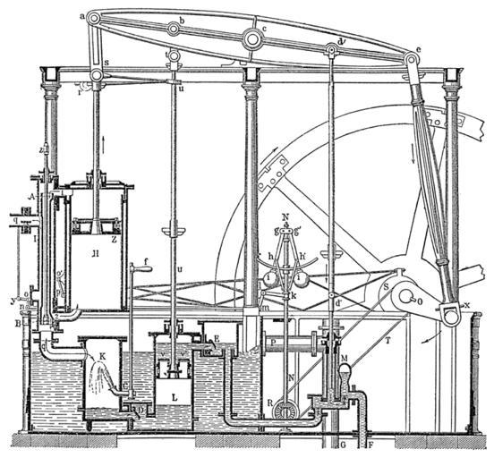 Keywords: Meyers b4 s0460 b1.png de Wattsche Niederdruckmaschine Meyers b4 s0460 jpg ca 1885 author PD-Meyers Images from Meyers Konversationslexikon 4th edition - text figures Watt engines Cross sections of steam engines