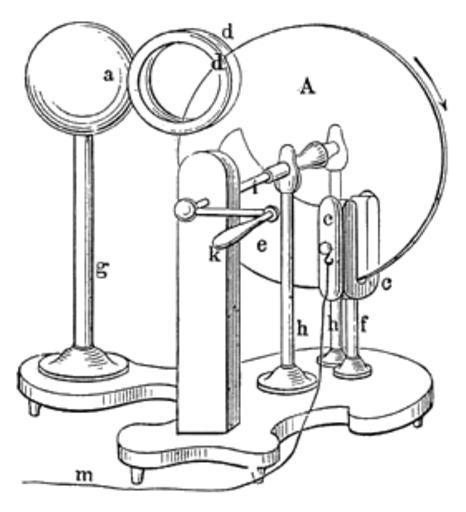 Keywords: Meyers b5 s0527 b1.png de Scheiben-Elektrisiermaschine Meyers b5 s0527 jpg ca 1885 author PD-Meyers Images from Meyers Konversationslexikon 4th edition - text figures Electrostatic generators