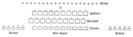 | Keywords: Meyers b6 s0087 b1.png de Legionarstellung der Römer von oben nach unten Veliten Hastaten Principes Triarier Reiterei / Eine Legion / Reiterei Meyers b6 s0087 jpg ca 1885 author PD-Meyers Images from Meyers Konversationslexikon 4th edition - text figures Military of ancient Rome |