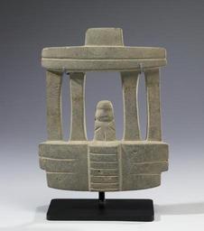 | Keywords: Mezcala - Temple Model - Walters 2009204.jpg The Mezcala sculptural style of Guerrero emphasizes geometric abstraction in both human figures and architectural models Few examples have been found in their original context and thus the function meaning and even the length of time during which the style was in use remain ill defined Contributing to the question of chronology is the fact that other Mesoamerican peoples from the latter centuries of the Late Formative to the Late Postclassic periods 200-1500 CE acquired and preserved these works as heirlooms They have been found at sites throughout Mexico and large numbers were excavated from ritual caches in the Templo Mayor the main temple of the fifteenth-century Mexica Aztecs of Tenochtitlan Mexico City In the twentieth century the minimalistic Mezcala artworks fascinated the Mexican artist and cultural historian Miguel Covarrubias who compared them favorably to other sculptural traditions such as the celebrated Cycladic style of ancient Greece This example features the typical Mezcala four-columned structure atop a pyramidal platform articulated by apron-moldings on the uppermost tier A central staircase leads into the structure at the midpoint between the columns A lone figure stands between the columns and inside the structure No buildings of this type have survived in Guerrero however which leaves open the question of whether this carving faithfully represents the architectural traditions of the region during the Formative and Classic periods 300 BC-AD 500 Terminal Formative-Early Classic stone cm 19 4 15 5 2 accession number 2009 20 4 80159 Michael Robins date and mode of acquisition unknown John G Bourne 1990s by purchase Walters Art Museum Gift of John Bourne 2009 place of origin Central Río Balsas area Walters Art Museum license Mexican Pre-Columbian art in the Walters Art Museum Mezcala stone artefacts Media contributed by the Walters Art Museum needs category review |